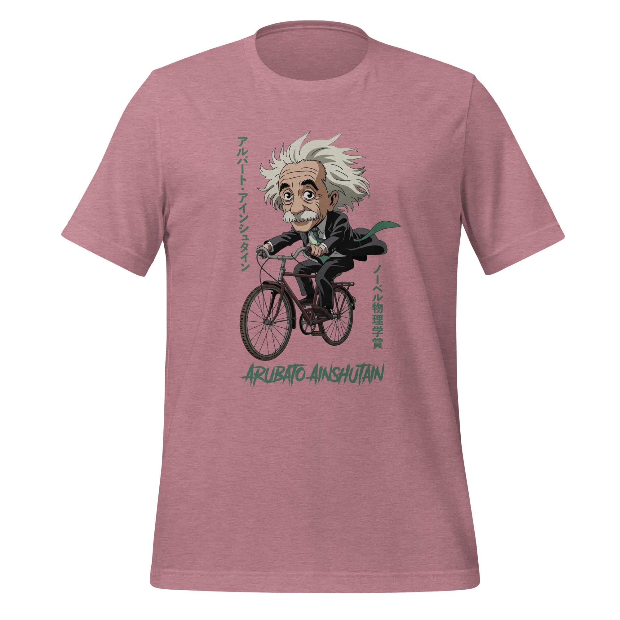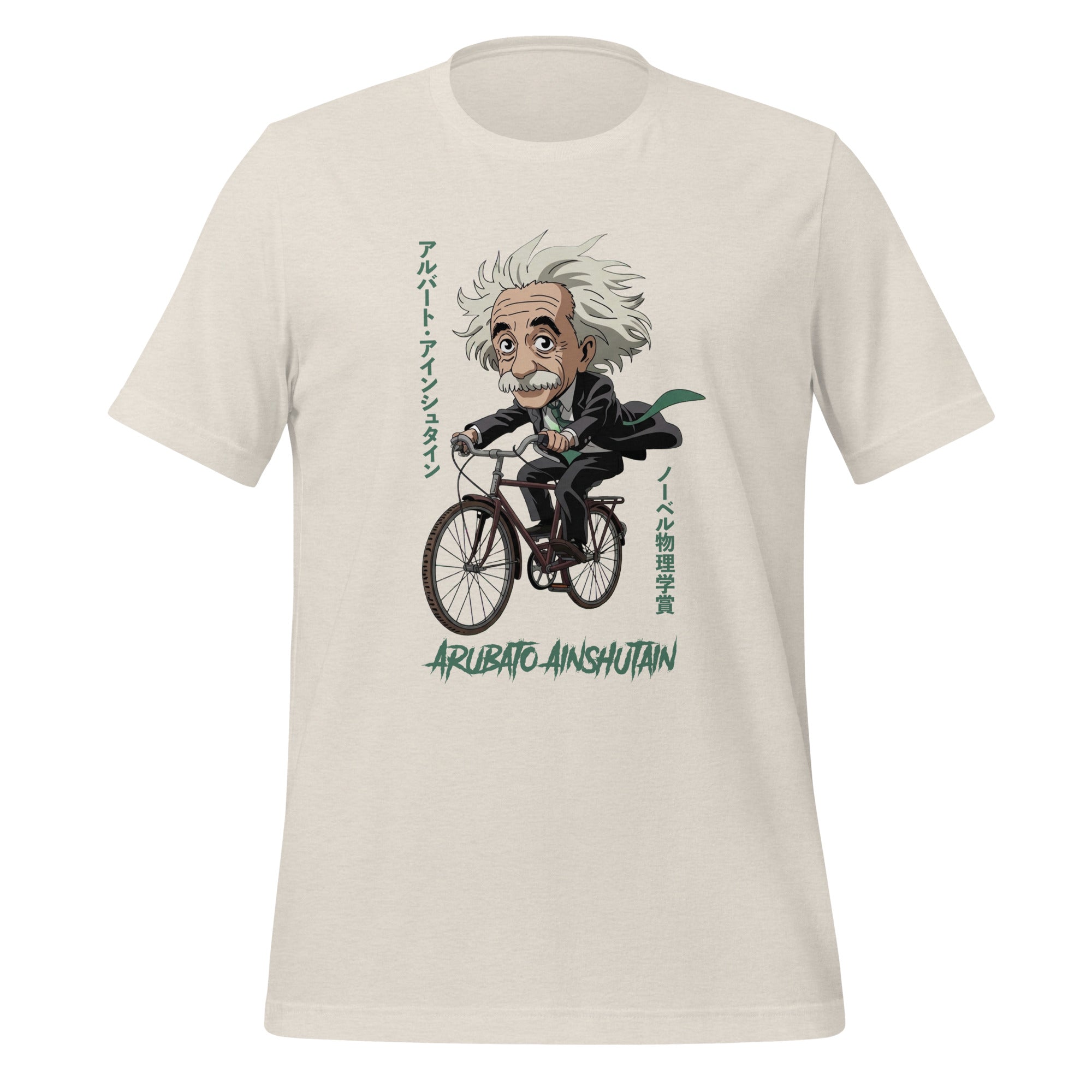 It's Albert Einstein reimagined as a Japanese anime character! Ideal for those who appreciate the intersection of scientific genius and Japanese culture. Wear relativity with sophisticated style! The Japanese text says, "Albert Einstein" and "Nobel Prize in Physics." This t-shirt feels soft and lightweight, with the right amount of stretch. It's comfortable and flattering for all.